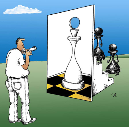 — Знать бы, что такое общественное сознание. Я могу говорить только об отдельных случаях столкновения с отдельными представителями общественного сознания. В основном — полное непонимание и совершенно непредсказуемая интерпретация твоих мыслей и глубокое почтение к тебе, как к человеку, чьи рисунки печатает газета. Всегда поражал вопрос: «И что, это вы сами придумали!?».