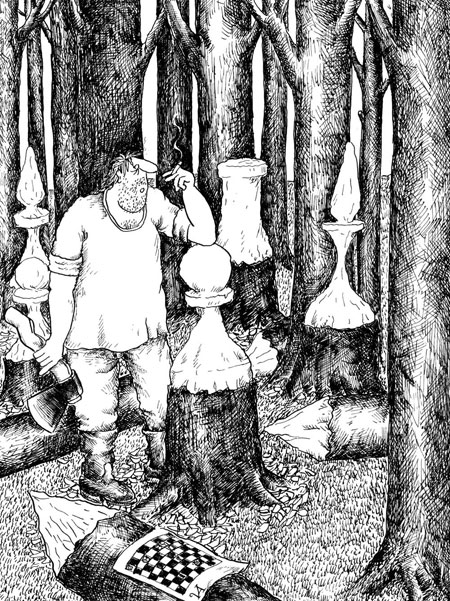 - Шахматная тематика в моем творчестве занимает значительное место, так как я очень люблю эту игру. Считаю, что шахматы имеют много общего с реальной жизнью. Сам играю исключительно в "веселые" шахматы — блицы по 10 минут. 5 минут — мало, 15 — много, а 10 в самый раз.