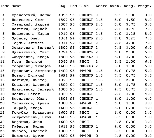 2   Хреновский, Денис   1894 94  СДЮШОР 3.5     9.0  8.00    9.5