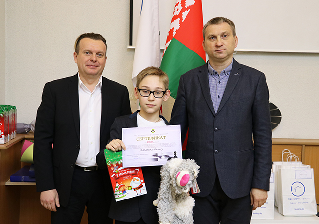 Денежные сертификаты от Белорусской федерации шахмат, конфеты от компании ООО «Евроторг» (сеть магазинов «Евроопт»), игрушки от наших партнеров СООО «Волшебный остров», а также памятные подарки от компании «ПриватЛизинг» получили: