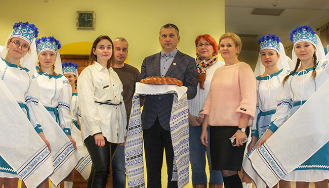 В 12 часов дети поприветствовали заместителя председателя Белорусской федерации шахмат Николая Зарубицкого весёлой песней на белорусском языке и румяным пирогом.