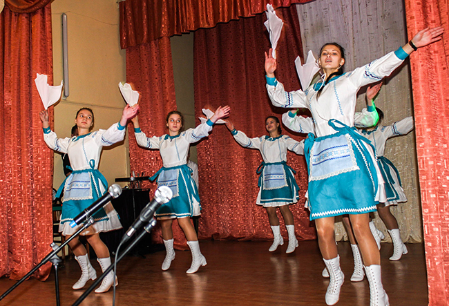 С хорошим настроением все последовали в актовый зал. Там ребята порадовали гостей танцами, песнями и театральными постановками.