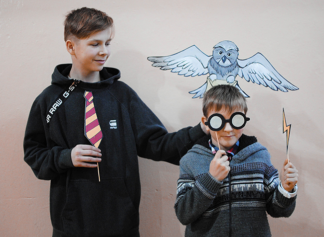 Пока дети обедали, представители федерации стали устанавливать фотозону. В реквизите были знаменитые очки Гарри, распределяющая по факультетам шляпа, письма из Хогвартса и многое другое...
