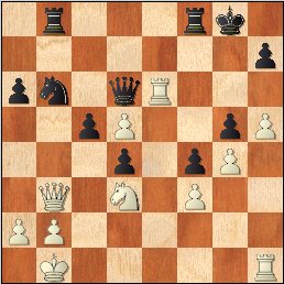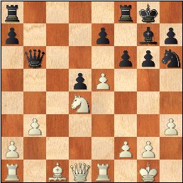27 Nxa1? Черные простодушно забирают ладью, надеясь выгадать темп нападением на ферзя. А необходимо было найти 27 Qe7! 28.Qxc2 Qxe6 29.Rd3 Qg4+ 30.Kh2 Rae8 31.Bc1 Bh6 с неясной позицией. 28.fxg5!! Как гром среди ясного неба! 28 Nxb3 29.Kg2!! У черных лишний ферзь, ладья и очередь хода. Но чтобы защититься от мата, им надо расстаться почти со всеми фигурами 29 Rf2+ 30.Kxf2 Qg8 31.Rh1+ Qh7 32.Rxh7+ Kxh7 33.Bxb3 a4 34.Be6 Re8 35.Nf4 Re7 36.d5 Na8 37.d6 1-0