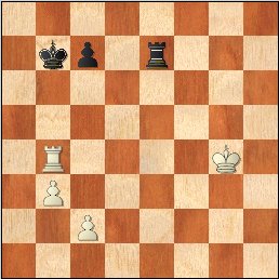 Что говорит теория ладейных окончаний по поводу этой позиции? По крайней мере, белым здесь победить не удалось, хотя спортивное значение этой партии было велико. 41.Rc6 h5 42.h4 Rb4 43.g3 Rb3 44.Kg2 g6 45.Kf2 Kh6 46.Re6 Kg7 47.Rd6 Kh6 48.Rc6 Ra3 49.b7 Rb3 50.Rc7 g5 51.Ke2 gxh4 52.gxh4 Kg6 53.Kd2 Kf5 54.Kc2 Rb6 55.Kc3 Rb1 56.Kc4 Kg4 57.Rd7 Rc1+ 58.Kd5 Rb1 59.Kc5 Rc1+ 60.Kb6 Rb1+ 61.Ka5 Ra1+ 62.Kb5 Rb1+ 63.Kc4 Rc1+ 64.Kb3 Rb1+ 65.Kc3 Kf5 66.Kc4 Ke6 67.Rh7 Kd6 68.Rh6+ Kc7 69.Rxh5 Rc1+ 70.Kd5 Kxb7 71.Rh7+ Kc8 72.h5 Kd8 73.Ke6 Re1+ 74.Kf6 Rf1+ 75.Kg6 Ke8 76.Rh8+ Rf8 77.Rh7 Rf1 78.Rg7 Kf8 79.h6 Rg1+ 80.Kh7 Rf1 81.Rg5 Kf7 1/2-1/2