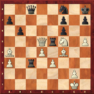 Далее было 29 Nf8 30.h5 Re5?? — последняя, роковая ошибка, которая, однако, позволила создать красивый финал. Нужно было 30 Rxa3.