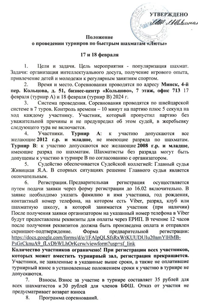 Положение о республиканских соревнованиях по шахматам на 2026 год