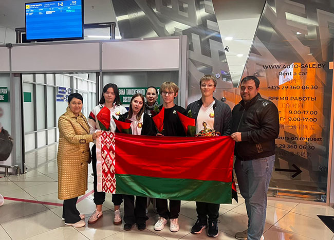 Торжественная встреча в минском аэропорту участников чемпионата мира по быстрым шахматам и блицу среди юниоров и юниорок.