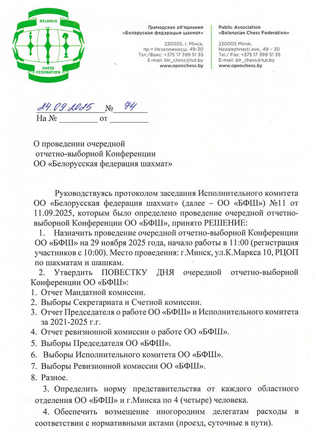 Положение о республиканских соревнованиях по шахматам на 2025 год