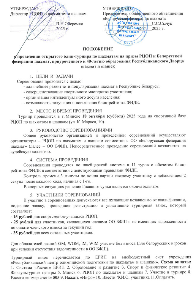 Положение о республиканских соревнованиях по шахматам на 2025 год