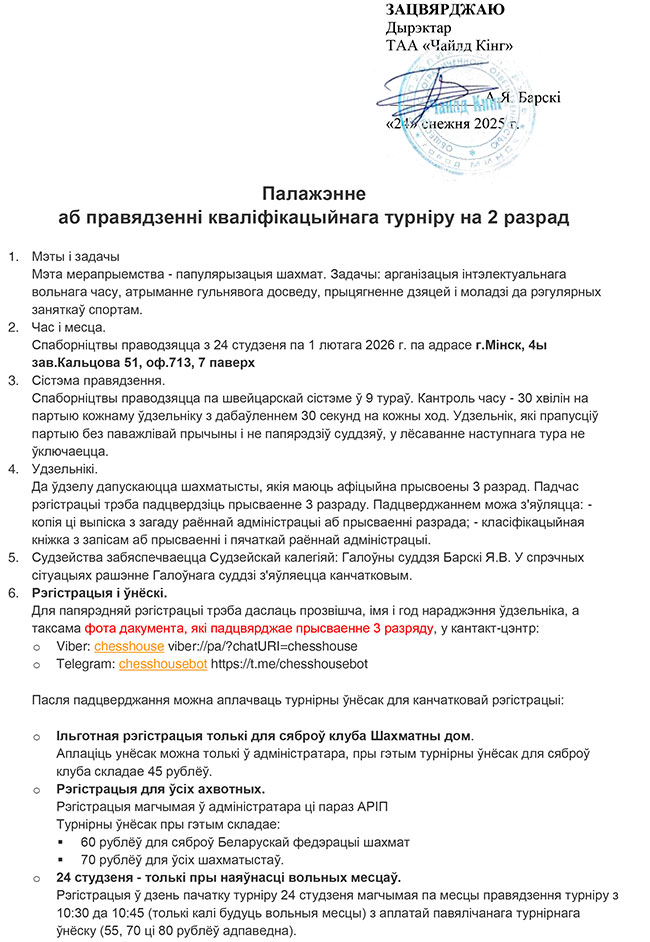 Палажэнне з'яўляецца афіцыйным запрашэннем для ўдзелу ў турніры.