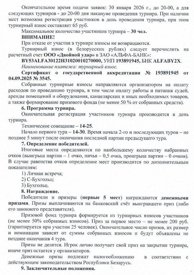 Положение о республиканских соревнованиях по шахматам на 2026 год