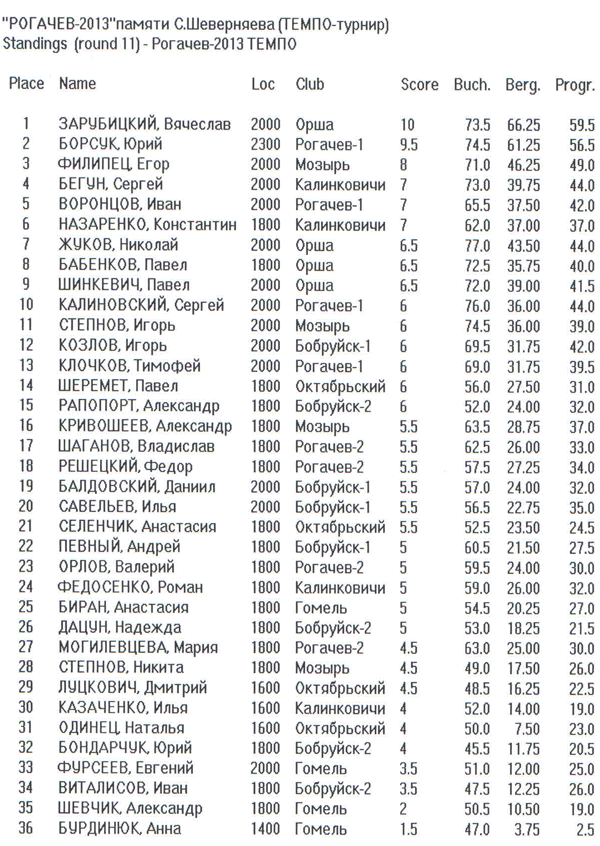 С 14 по 16 июня 2013 года в городе Рогачеве прошел Межрегиональный шахматный турнир «РОГАЧЁВ-2013» памяти молодого рогачевского шахматиста, кандидата в мастера спорта, неоднократного призера, победителя первенства Рогачевского района 2007 года, Сергея Шеверняева (годы жизни 1983-2007).