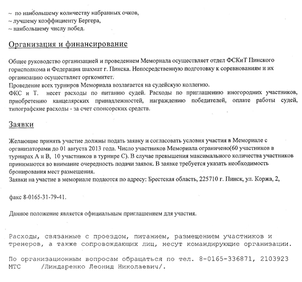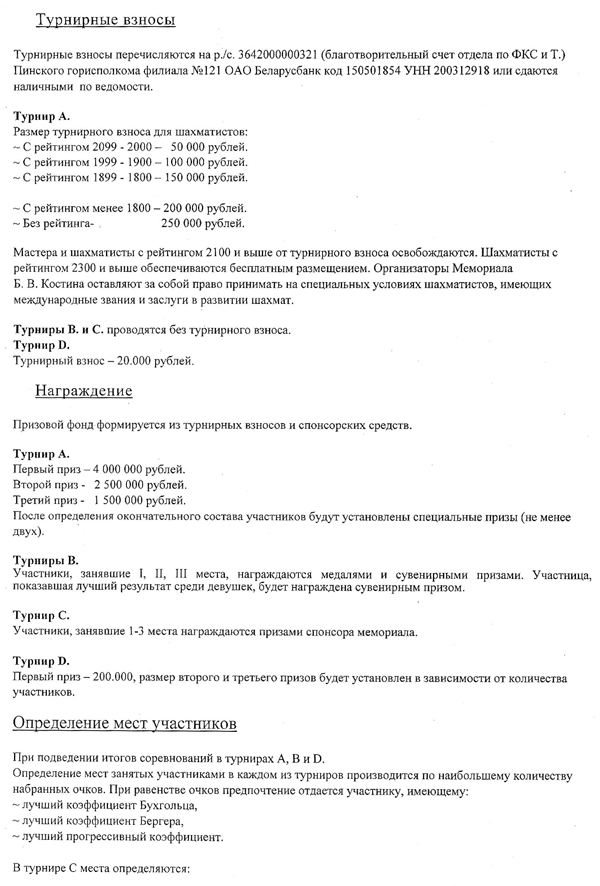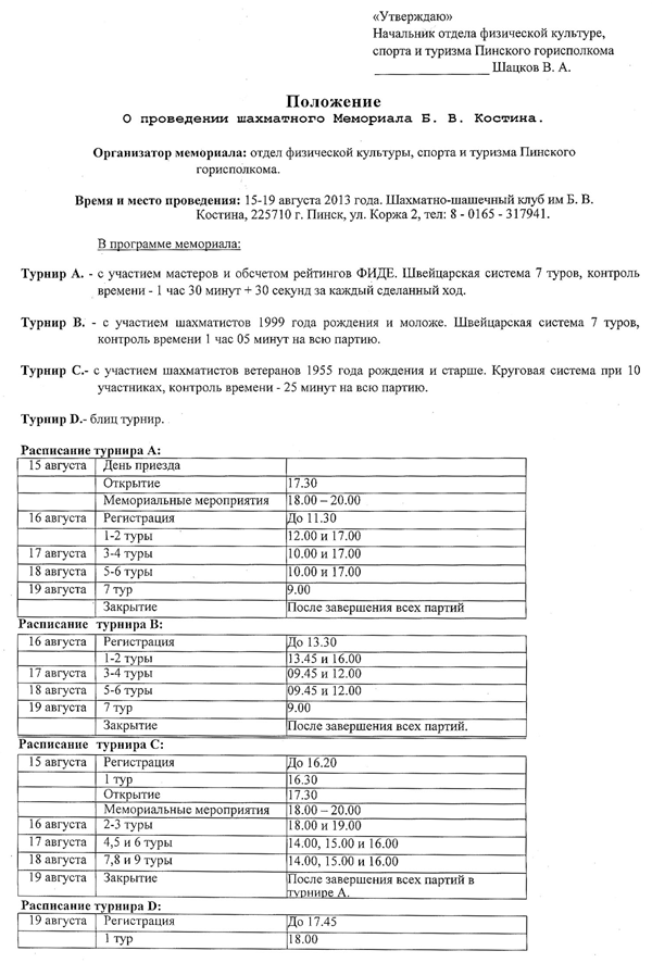 15-19 августа в Пинске пройдет Мемориал Б. В. Костина. В рамках Мемориала состоится 4 турнира.