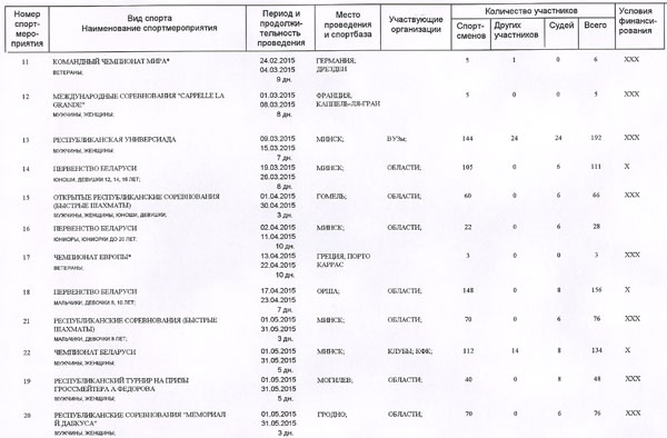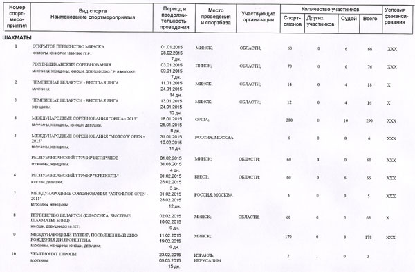 Представляем Вашему вниманию календарный план республиканских и международных шахматных соревнований на 2015 год, официально утвержденный Министерством спорта и туризма Республики Беларусь.