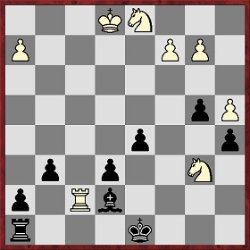 И тут белые вместо 1. Rg7! (направлено против …Ke8 с темпом) с примерным вариантом 1… Re8, 2. Ne3 — Bh4, 3. Ke2 — Re7, 4. Rg8 — Re8, 5. Re8 — Ke8, 6. Nc8 += сыграли 1. Nc8?? Последовало 1… Bh4 — /+, и победа досталась черным. Очень важно сохранять концентрацию на протяжениивсей партии и всего турнира!