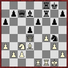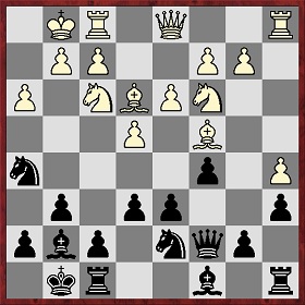 Игровая позиция, примерно равная. Посмотрев на нее, можно отметить несколько моментов: конь черных на краю доски, слон с с8 пока не выходит. Вернуть коня на f6 означает потерять темп, ход …Ne5 приемлем, но вряд ли вызовет у белых серьезные затруднения (пойдут Nxe5, дальше Qd2). Однако, если внимательнее присмотреться, то можно заметить, что белая пешка на a5 не только ограничивает фигуры черных, но и является потенциальной слабостью. 1… Nb8!? последовало в партии с дальнейшим переводом на с6, нападая на пешку, беря под контроль центральные поля, а также выпуская слона и соответственно ладью из заточения. Дальнейшая борьба с обоюдными ошибками привела к победе черных.