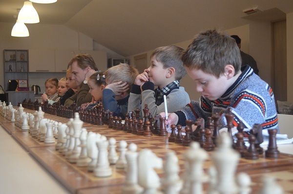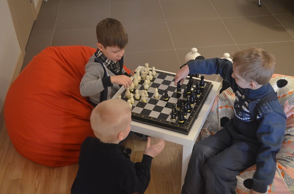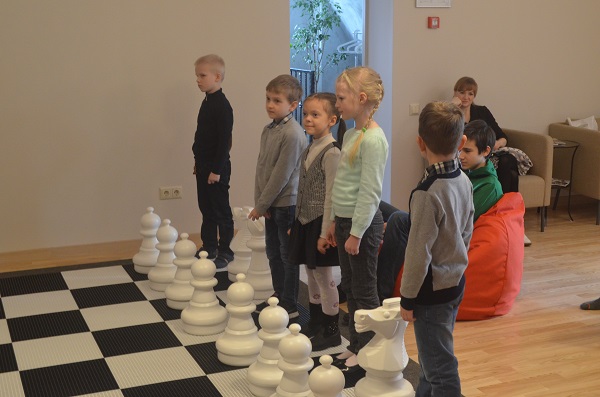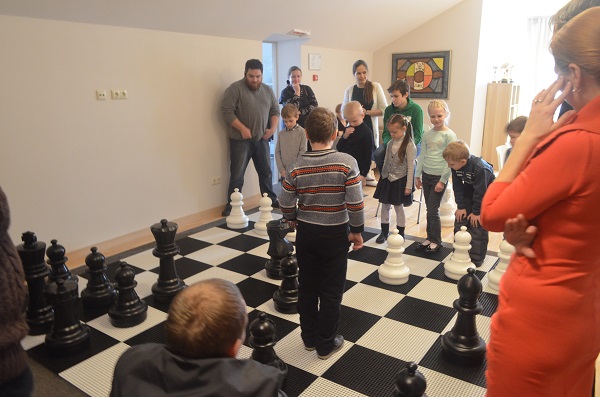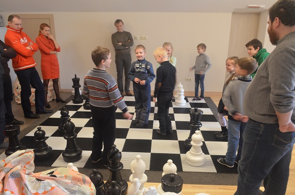 Команда детей против команды родителей. Если победа достанется взрослым – дети обещают быть послушными весь вечер, а если детям – полное непослушание. Согласитесь, есть за что бороться! И дети, превратившись в настоящие шахматные фигуры, одолели в непростой схватке команду черных.