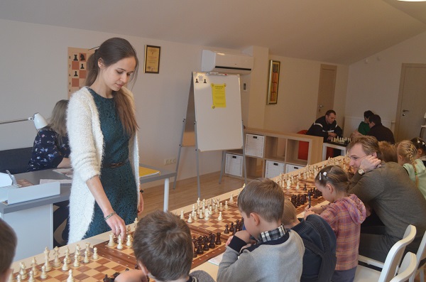 Воодушевленные победой, они приступили непосредственно к сеансу. Сражение длилось больше часа. Никто не хотел уступать. По игре этих юных ребят можно предугадать большое шахматное будущее. Важно не зазнаваться и продолжать работать с еще большим напором. И если сейчас что-то не получается, в будущем все обязательно получится! Несмотря на то, что одолеть меня черными (сеансер на всех досках играет белыми) никто не смог, девочки и мальчики получили опыт игры с гроссмейстером. И если бы не определенные зевки, устраняющиеся работой над шахматами и обусловленные юным возрастом, победить их было бы очень трудно. Один маленький совет, касающийся всех: шахматист никогда не станет великим чемпионом, если не будет вести себя как чемпион. Даже то, как ребенок сидит за доской и что делает в ходе раздумий, однажды скажется на результате. На днях посмотрела кино “Тренер Картер” о баскетбольной команде, и это хороший пример того, как же нужно воспитывать Чемпионов. Шахматы формируют личность, но все же в большей степени от личности зависит результат.