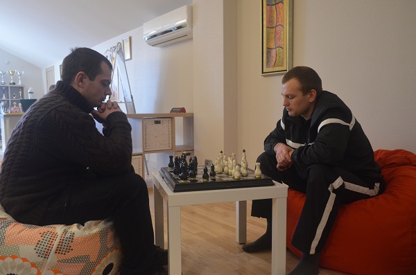 Родители тоже не теряли зря время и сражались за шахматами из настоящей слоновой кости, возрастом более 30 лет.