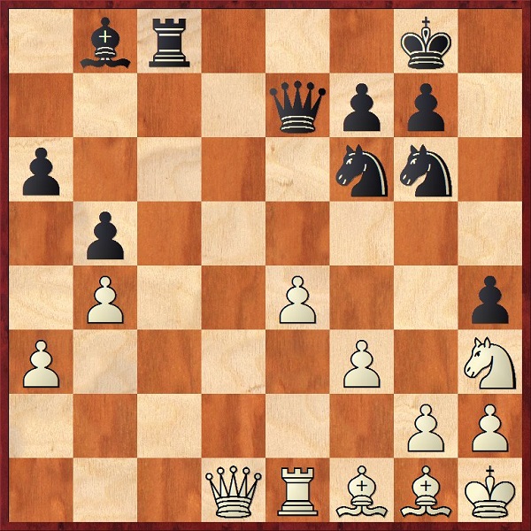 27.е5!Kh5 28.Фd4! (в партии последовало 28.а4?! и борьба затянулась) Лd8 вот тут я не понимал, как продолжать. Между тем сильно 29.Фb6! (ещё +2 очка) атакуя всё вокруг Cc7 (29…Ce5:? 30.f4+-) 30.Ф: а6C:e5 31.Ф:b5 +-.