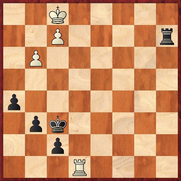 Несколько удивила известная уже Михаэла Санду. Дама выкосила подряд пять крутейших соперниц и лидировала на чемпионате Европы, но почему-то этот наш эндшпиль (Михаэла белыми) длился часа полтора. Причём, после следующего странного хода. Как бы Вы сейчас сыграли, с точки зрения борьбы за победу? Ход белых.