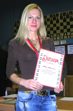 не выдержала Настя. Поражение в 4 туре от Натальи Кусенковой и две вымученные ничьи с не самыми сильными соперницами практически убили интригу чемпионата. А опытный турнирный боец Аня Шаревич, как самая современная компьютерная программа «Fritz», буквально «растаптывает» своих соперниц и в оставшихся шести турах набирает 4 очка (проигрывает лишь в последней, ничего не значившей, партии) и становится четырехкратной чемпионкой Беларуси.