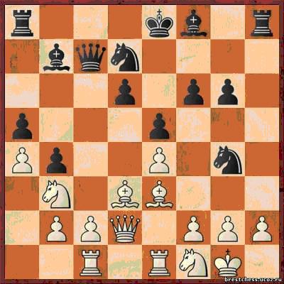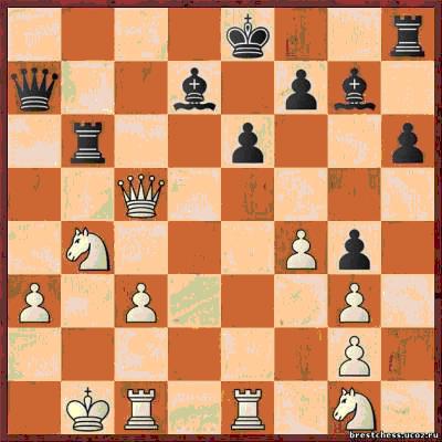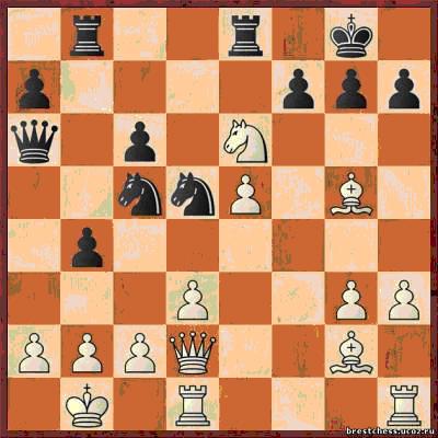 f3! 17.К:d4 [17.g:f3 К:f3+ 18.Крg2 Сh3+19.Кр:f3 Фg4+ 20.Крe3 К:d5+ 21.e:d5 Сg5+; 17.Кc3 f:g2 18.Кр:g2 Сh3+ 19.Крg3С:f1 20.Ф:f1 Фg4#] 17 f:g2 18.Лe1 c:d4 19.c4 Сh3 20.Фf3 Лf8 21.Фg3 Кh5! и ферзь пойман 22.С:b7Кр:b7 0-1