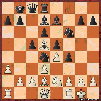 1.e4 e5 2.Кf3 d6 3.d4 Кd7 4.Кc3 Кgf6 5.Сc4 h6 6.0-0 c6 7.a4 Сe7 8.Фe2 Фc7 9.Сb3 сильнее было Са2, оставляя за собой идею b4-b5 9 Кf8 10.Лd1 g511.a5 Кg6 12.Фc4 0-0 13.a6 Сg4 14.Лd3!? ведет сразу к уравнению b5 14 К:e4 [14 b5! 15.К:b5 Фb6 16.Кc3К:e4 17.Кa4 Фa5 18.Лe3 с очень острой позицией] 15.d:e5 К:c3[15 С:f3 16.Л:f3 К:c3 17.a:b7 Ф:b7 18.e:d6 Кd5 19.d:e7 Ф:e7 с заметным перевесом у белых] 16.Ф:g4 Кe2+ 17.Крf1 Кef4? [17 К:c1 18.e:d6 С:d6 19.Л:c1 Лad8 20.a:b7 с лучшей позицией у белых] 18.С:f4 с форсированной победой 18 К:f4 19.e:d6 С:d6 20.К:g5h:g5 21.Ф:g5+ Крh7