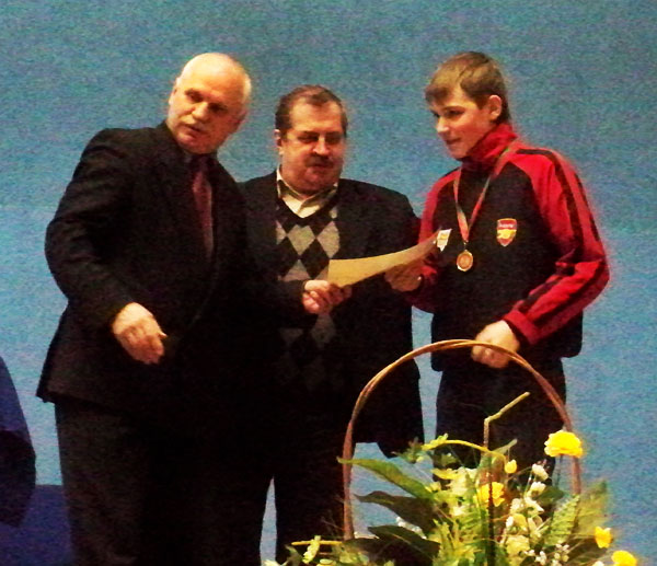 Ну а вторую почетную награду для тренера чемпиона получил Виктор Владимирович Каретников — единственный и действующий тренер Станислава Цыганчука. К сожалению, Виктор Владимирович на закрытии не присутствовал, но награда найдет его в г. Орша.