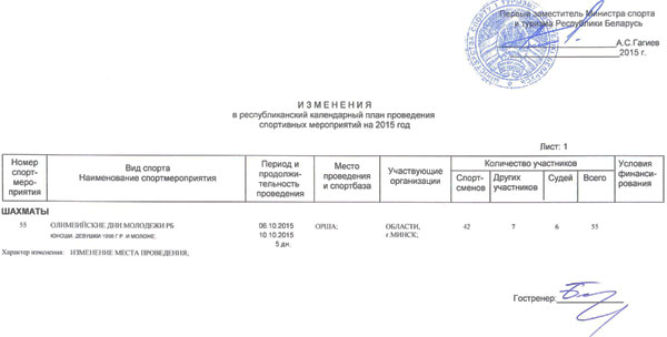 Внесены изменения в республиканский календарный план проведения спортивных мероприятий на 2015 год. Олимпийские дни молодежи пройдут с 6 по 10 октября в городе Орша.