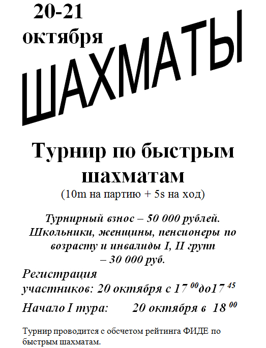 С 20 по 21 октября в Республиканском центре олимпийской подготовки по шахматам и шашкам проходит турнир по быстрым шахматам с обсчетом рейтинга ФИДЕ.