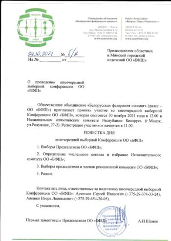 Здесь можно ознакомиться с регламентом предстоящих соревнований, которые пройдут с 27 ноября по 5 декабря 2021 года на базе ГУ «СДЮШОР по шахматам и шашкам» (г.Минск, ул.Раковская, 24)