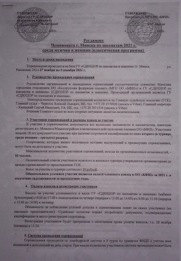 Чемпионат г.Минска по шахматам 2021 года среди мужчин и женщин (классическая программа)