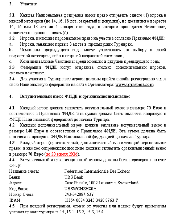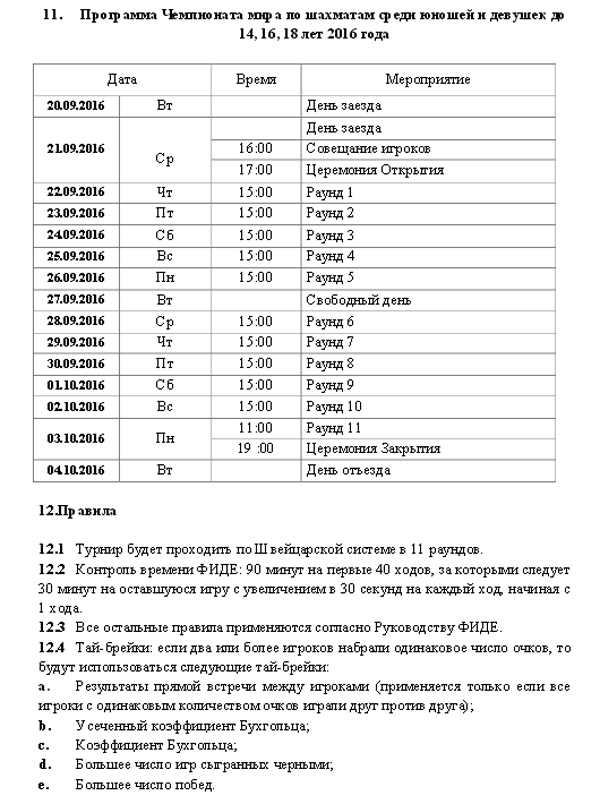 Чемпионат Мира среди юношей и девушек до 14, 16, 18 лет.