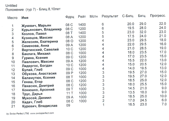 1. Жукевич Марьян (тренер Смирнов А. Б.)