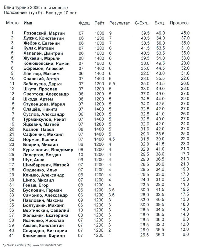1. Лозовский Мартин (тренер Росихин И. С.)