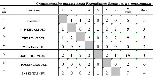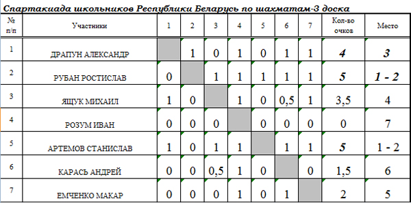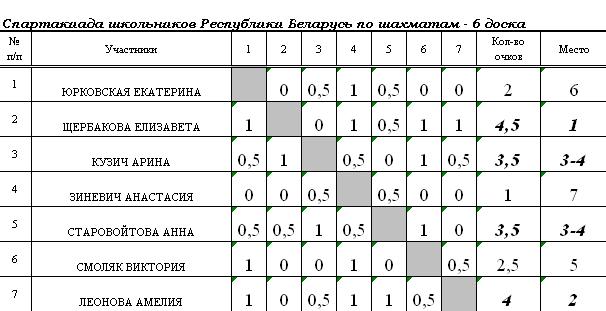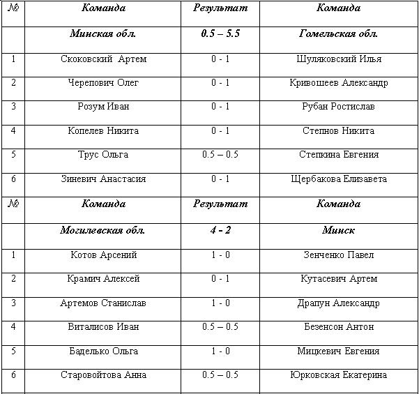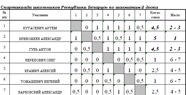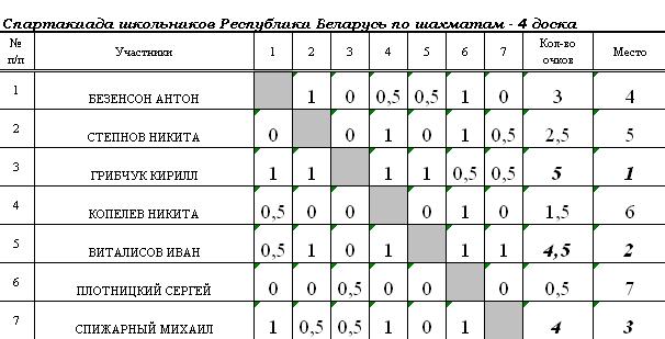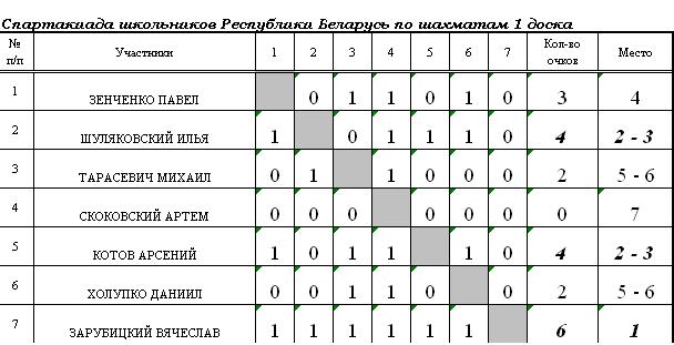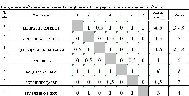 5. Результата дополнительного соревнования по блицу.
