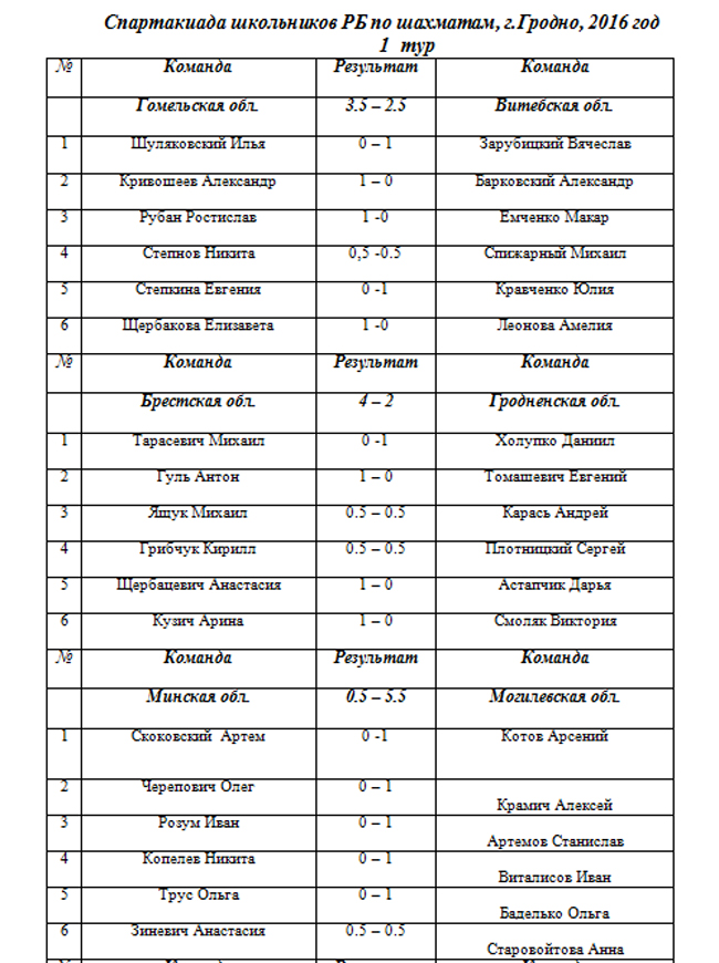 Протоколы 1-го дня соревнований.