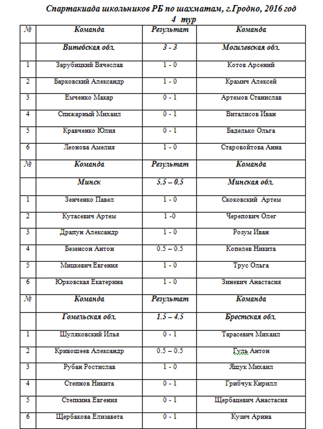 4 тур –через 10 минут после окончания третьего тура