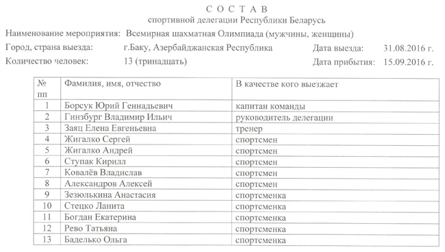 Утвержден состав спортивной делегации Республики Беларусь на Всемирной шахматной Олимпиаде.