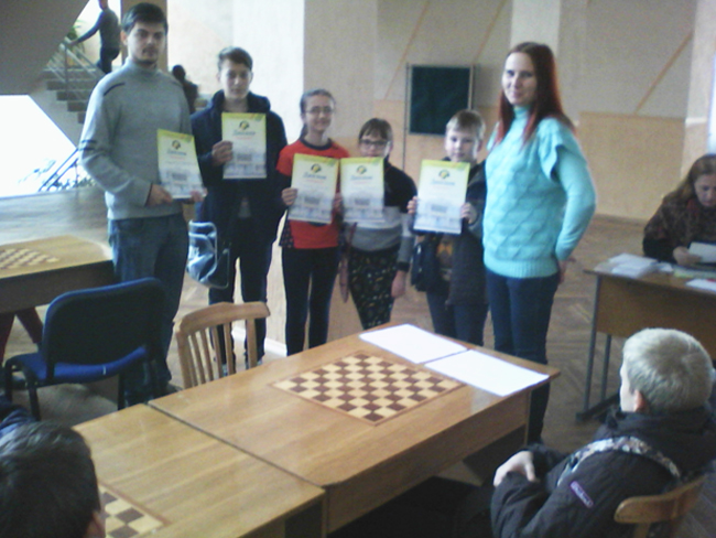 И, наконец, победители первенства - УО «ГГОДТДиМ» во главе с представителем команды Сычевым Д.А., который в то же время на своих плечах «вынес» судейство данного турнира.