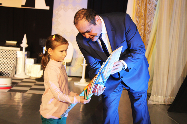 Владимир Полей как настоящий Дед Мороз подарил множество призов юным шахматистам.