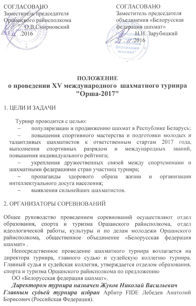 Международный шахматный турнир «Орша-2017» проводится с 19 по 26 января 2017 г. в филиале Усу «Оршанская государственная СДЮШОР№2» «Ледовая Арена» (далее - Ледовая арена) (Республика Беларусь. г.Орша, ул.Ленина,79)