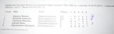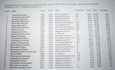 С 19 по 22 марта в Борисове прошло первенство Минской области по шахматам среди юношей и девушек до14,16лет.В результате упорной борьбы определились победители и призеры, которые завоевали путевки на первенство Беларуси в г. Могилеве.Юноши до 14 лет: