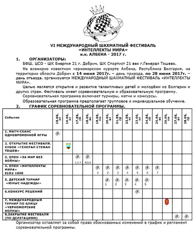 С 14 по 28 июня в болгарской Албене пройдет очередной международный фестиваль "Интеллекты Мира".