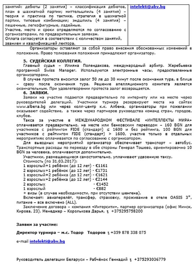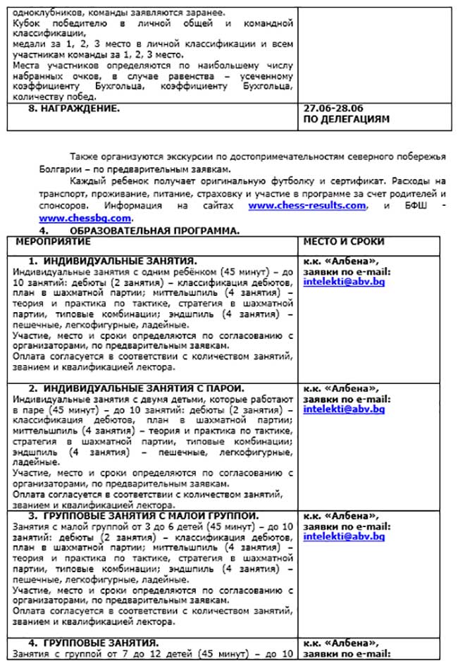 "Хроника шахматной Албены".