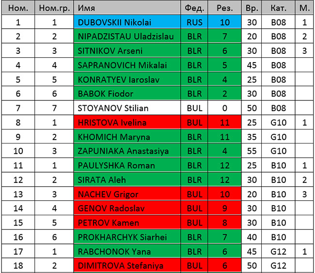 Личные золотые награды по доскам добавили Рабчёнок Яна – 5 из 6, золото, Сирота Олег – 6 из 7, золото, Хомич Марина – 5 из 6, серебро, Запуняко Анастасия – 3,5 из 6, серебро.