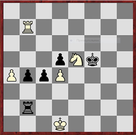 Белые удержались на тонкой грани после 44… Ke4 45.Nc6 Ra2 46. a5 Kd3 47.Nb4+ Kxd4 48.Kc1 Rh2 49. a6 c3 50.Nc6+ Kd3 51.Ne5+ Ke4 52.Rxb3 Kxe5 53.Ra3, и ничья стала очевидной.