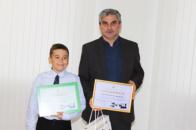 Сертификат на 1000 белорусских рублей получил и бронзовый призер Чемпионата Европы среди мальчиков до 10 лет Артем Стрибук. Не забыли и про тренеров юных звездочек. Елена Заяц и Семен Мерибанов под шквал аплодисментов получили благодарности от ОО «БФШ».